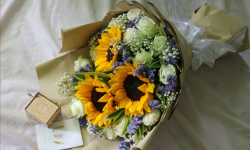 Роза Jumilia 60см, эустома, эвкалипт, хризантема, хлопок